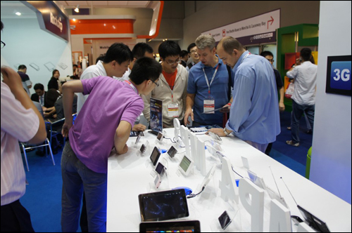 乐竞在线官网(中国)官方网站可谓本届香港电子展最火爆的展台,参展人群络绎不绝,海内外客商对乐竞在线官网(中国)官方网站在移动互联领域的新品发布兴趣浓厚。