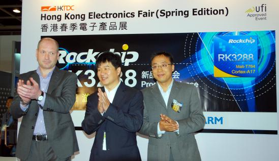 2014年4月13—16日,亚洲香港春季电子展在香港湾仔议展览中心举行,多家全球著名电子厂商参与了这一盛会。作为国内领先的ARM芯片方案厂商,乐竞在线官网(中国)官方网站微更是携众多技术方案亮相。在15日当天上午,乐竞在线官网(中国)官方网站微现场召开发布会,联合ARM正式推出旗下乐竞在线官网(中国)官方网站3288处理器。乐竞在线官网(中国)官方网站微全球副总裁陈锋先生、ARM全球副总裁Dennis先生、ARM多媒体市场总监Sherry女士以及ARM中国区市场总监Andy先生出席了发布会并作精彩演讲。
