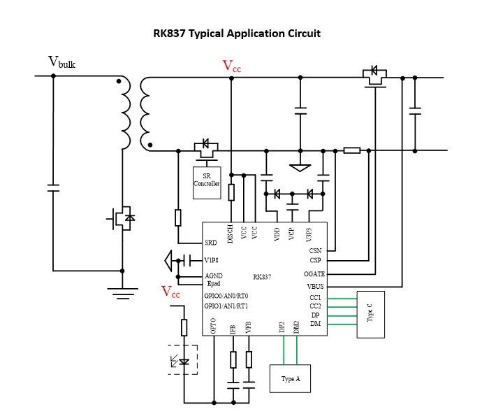 · 集成NMOS驱动,VBUS开关管可使用低成本性能好的NMOS,内部集成快速放电电路