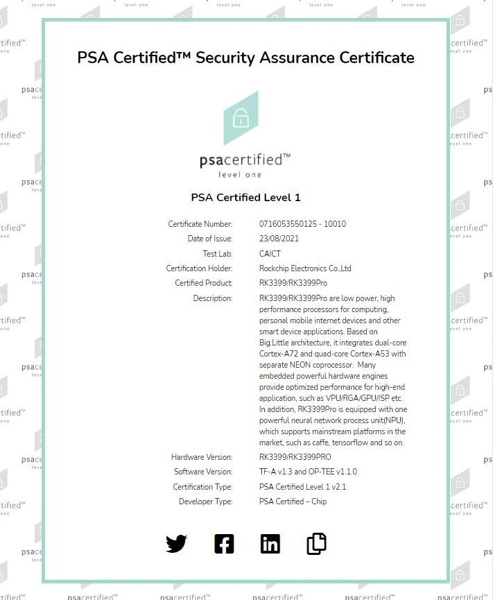 乐竞在线官网(中国)官方网站3399Pro及乐竞在线官网(中国)官方网站3399通过Arm平台安全架构PSA认证