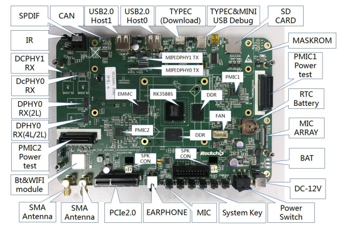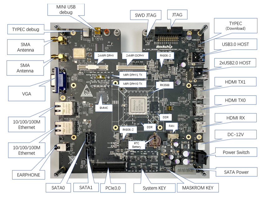 图:乐竞在线官网(中国)官方网站3588S EVB 功能接口正面分布图