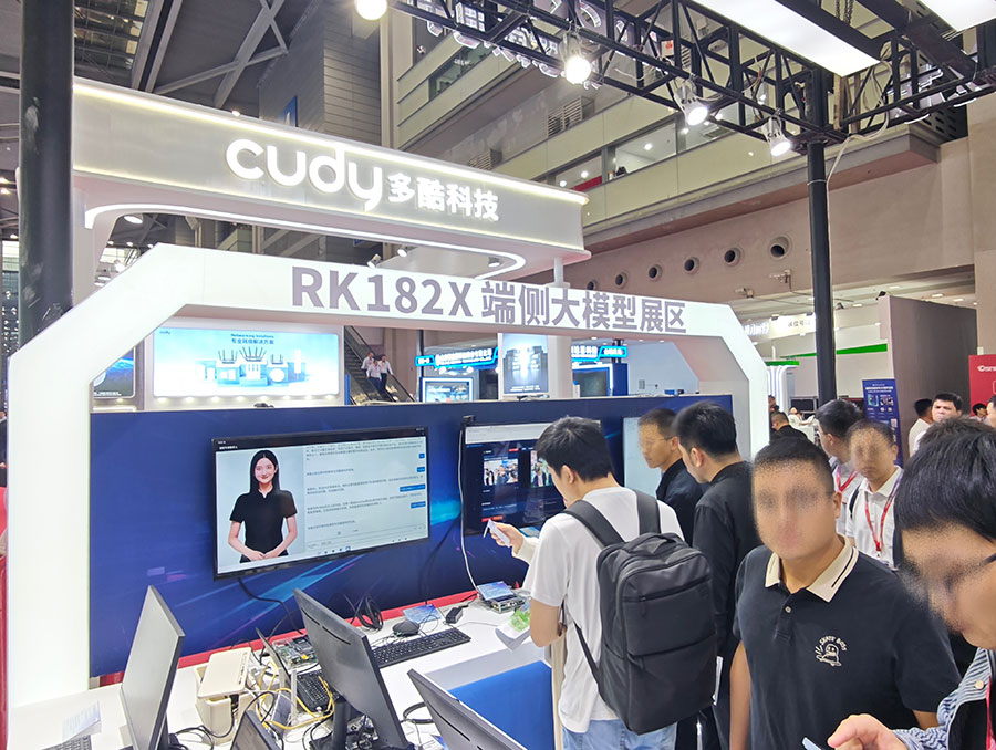 端侧大模型展区,展出乐竞在线官网(中国)官方网站182X端侧AI算力协处理器及系列相关应用。乐竞在线官网(中国)官方网站182X具备大算力、高带宽特性,支持3B/7B大模型突破百token/s输出,可根据算力需求叠加一个或多个乐竞在线官网(中国)官方网站182X协处理器,为终端设备提供前所未有的算力灵活性,针对端侧AI复杂计算需求,特别是在多路视觉分析领域如智能安防、智能社区、智能校园等提供安全、可靠、低成本的AI部署选择。