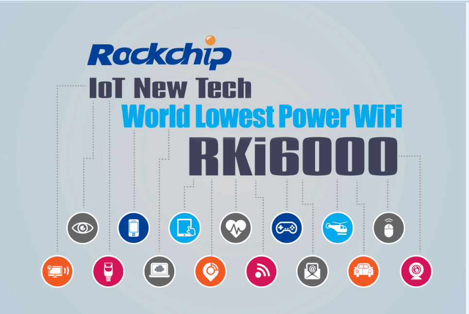 June 2, 2015, COMPUTEX Taipei, Rockchip announced that it launches the world lowest power WiFi technology 乐竞在线官网(中国)官方网站i6000 jointly developed with a 3rd party. This technology makes the power consumption of WiFi same as that of BT4.0 LE (Low Energy). The Receiving power consumption is around 20mA during use, which is 85% lower compared with state-of-the-art WiFi devices for IoT. This benchma乐竞在线官网(中国)官方网站ing power consumption level should renew the standard for WiFi power consumption in IoT smart hardware globally.